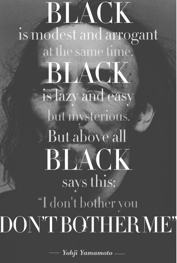 요지 야마모토는 그의 검은 옷을 사랑하는
