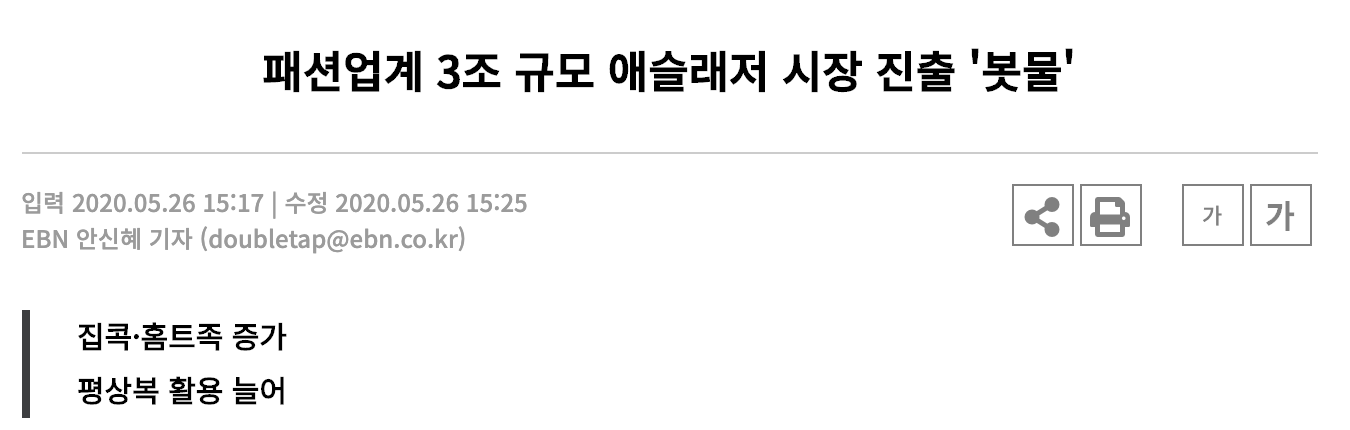 • 포스트 코로나 패션시장을 이끌어갈 애슬레저룩? 바뀌는 일상복