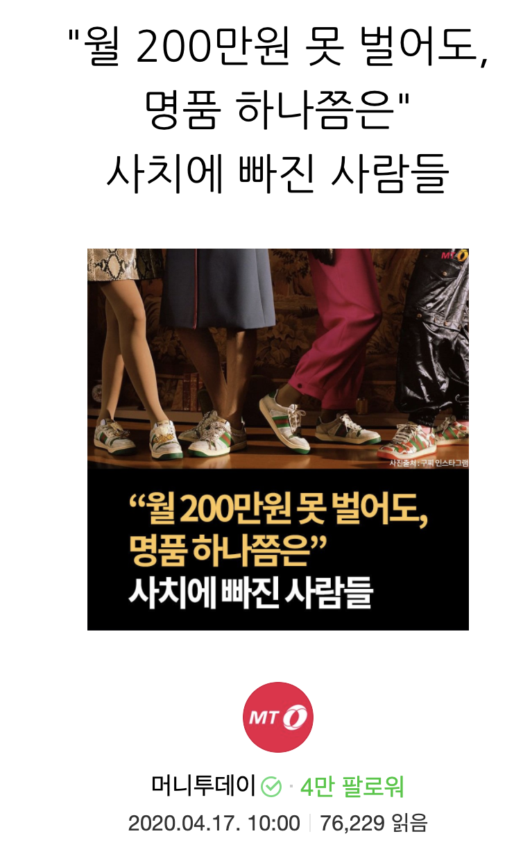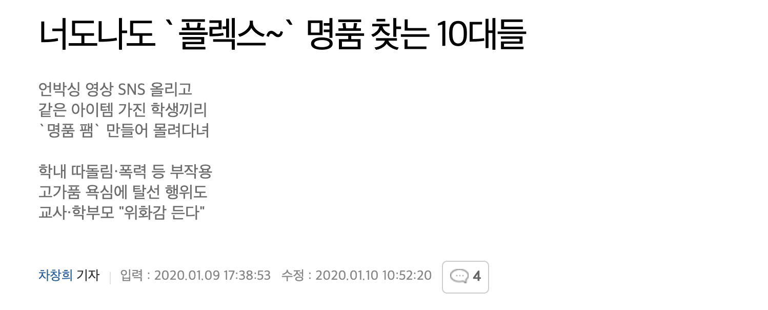 당장 sns와 유튜브만 보더라도 명품을 자랑하는 10대들을 볼 수 있다.