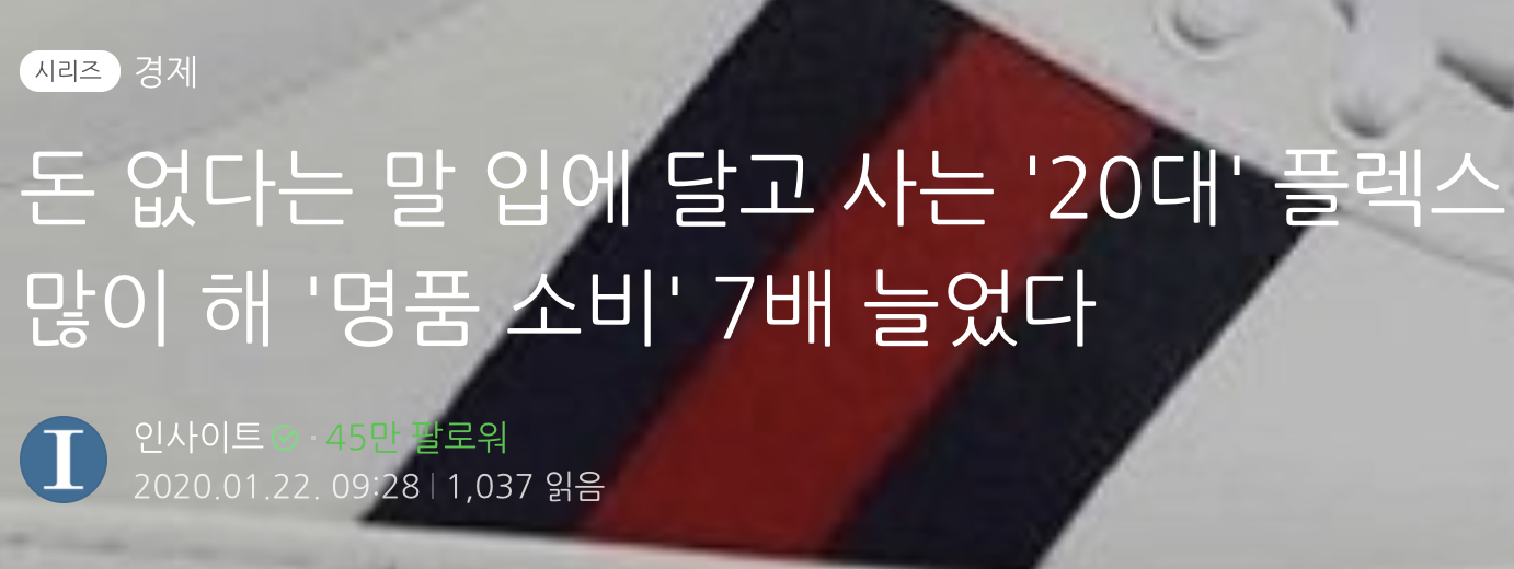 뉴시스 실제로 2030 세대의 플렉스 성 소비(고가의 제품 쇼핑)는 점차 늘어나고 있고