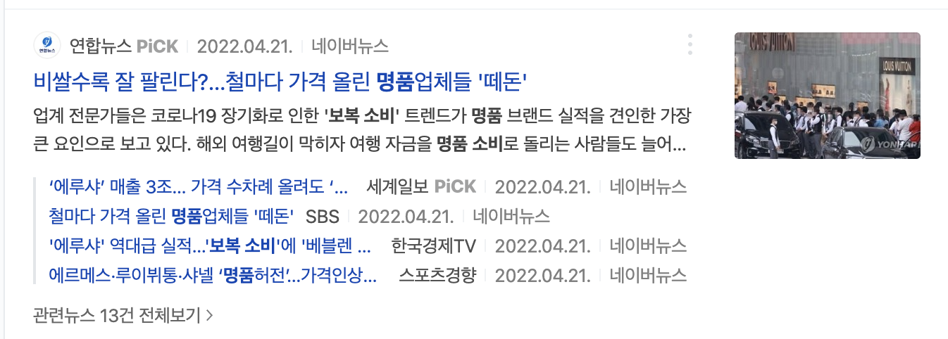 이러한 명품 업계의 호황은 단순히 보복 소비로 인한 반짝 특수라고 보기엔 엄청난 수치라고 할 수 있다.