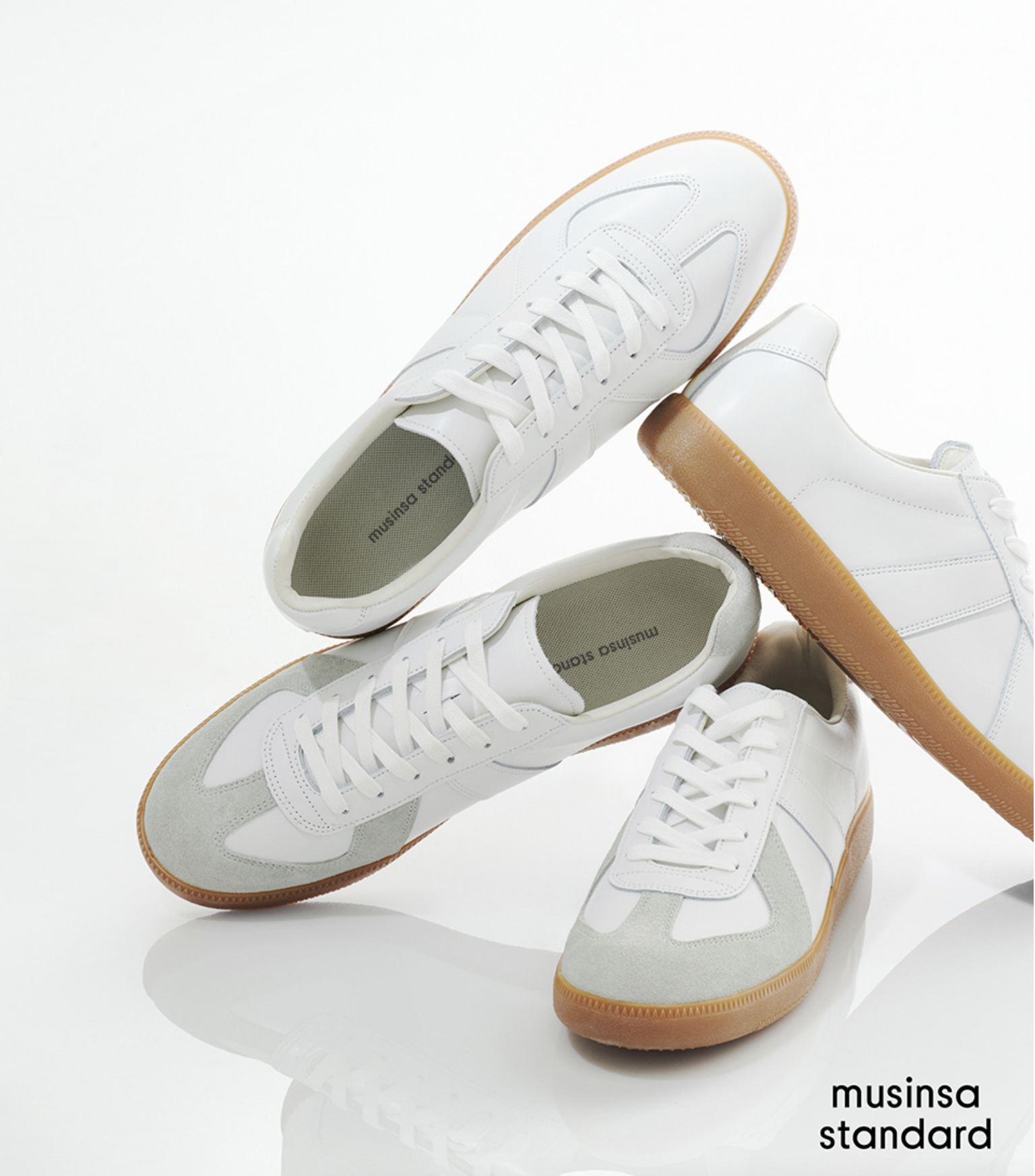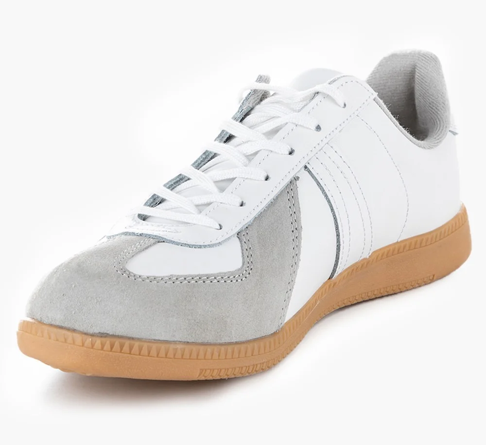 독일군 스니커즈의 특징은 얄쌍한 셰입과 앞코에 덧댄 스웨이드 디자인이고