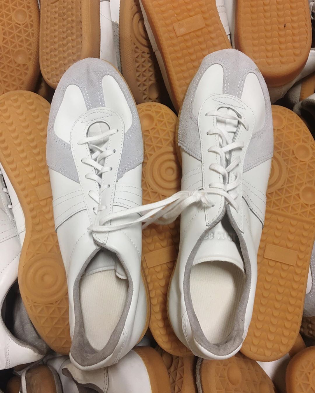 독일군 스니커즈의 특징은 얄쌍한 셰입과 앞코에 덧댄 스웨이드 디자인이고