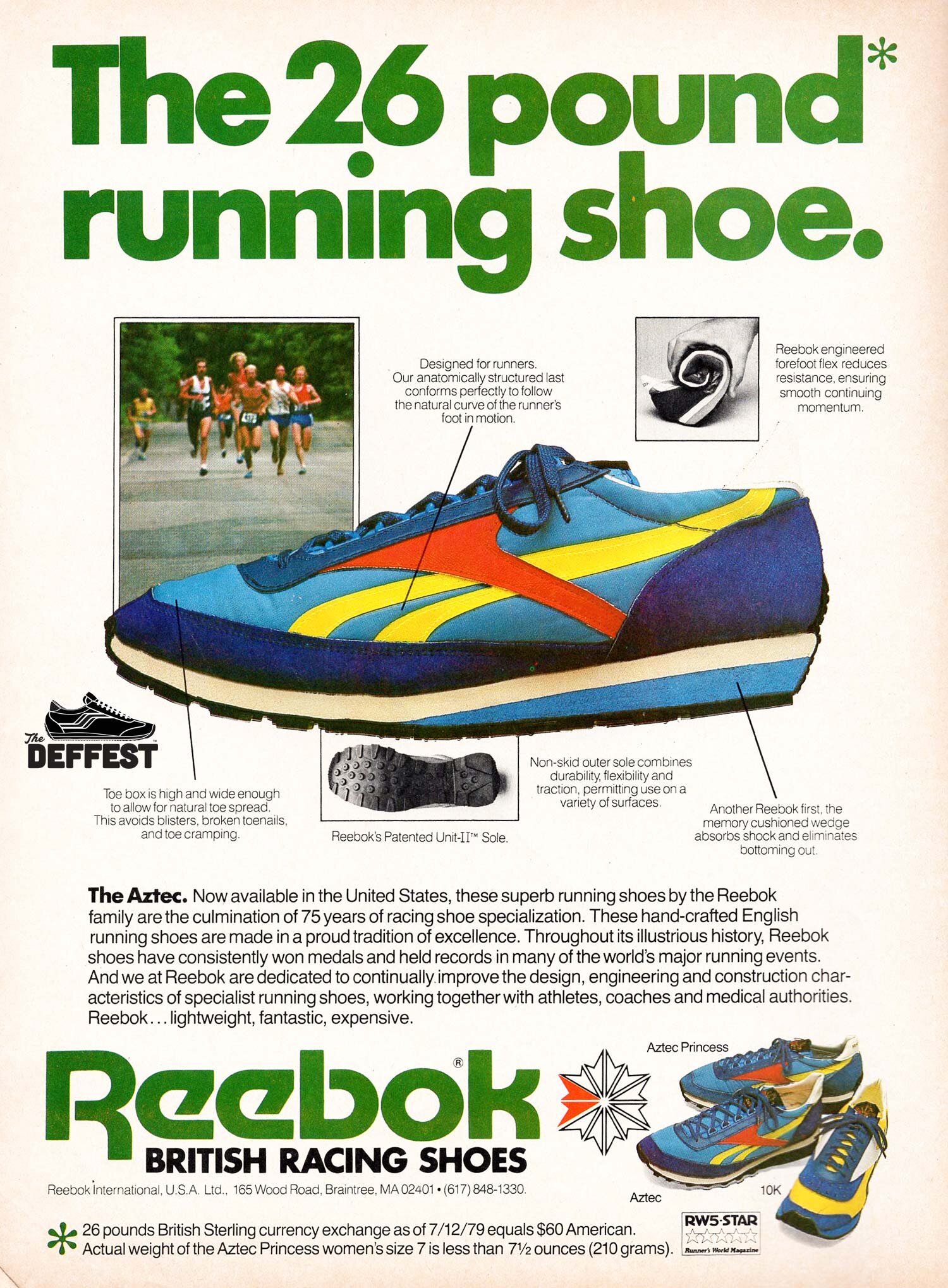리복의 러닝화 아즈텍은 브리티시 러닝슈즈라는 표어와 함께 많은 판매고를 달성했고