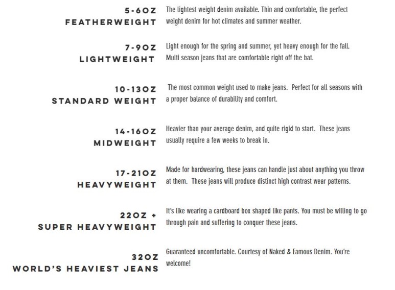 라이트 웨이트 데님 부터 해비 웨이트 데님으로 나뉘게 되는데