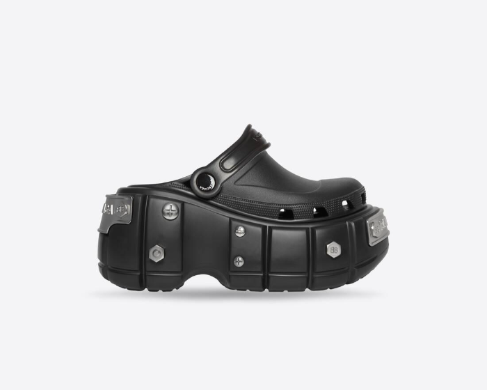 크록스와의 협업에서도 발렌시아가는 청키하고 볼드한 실루엣을 강조했다.